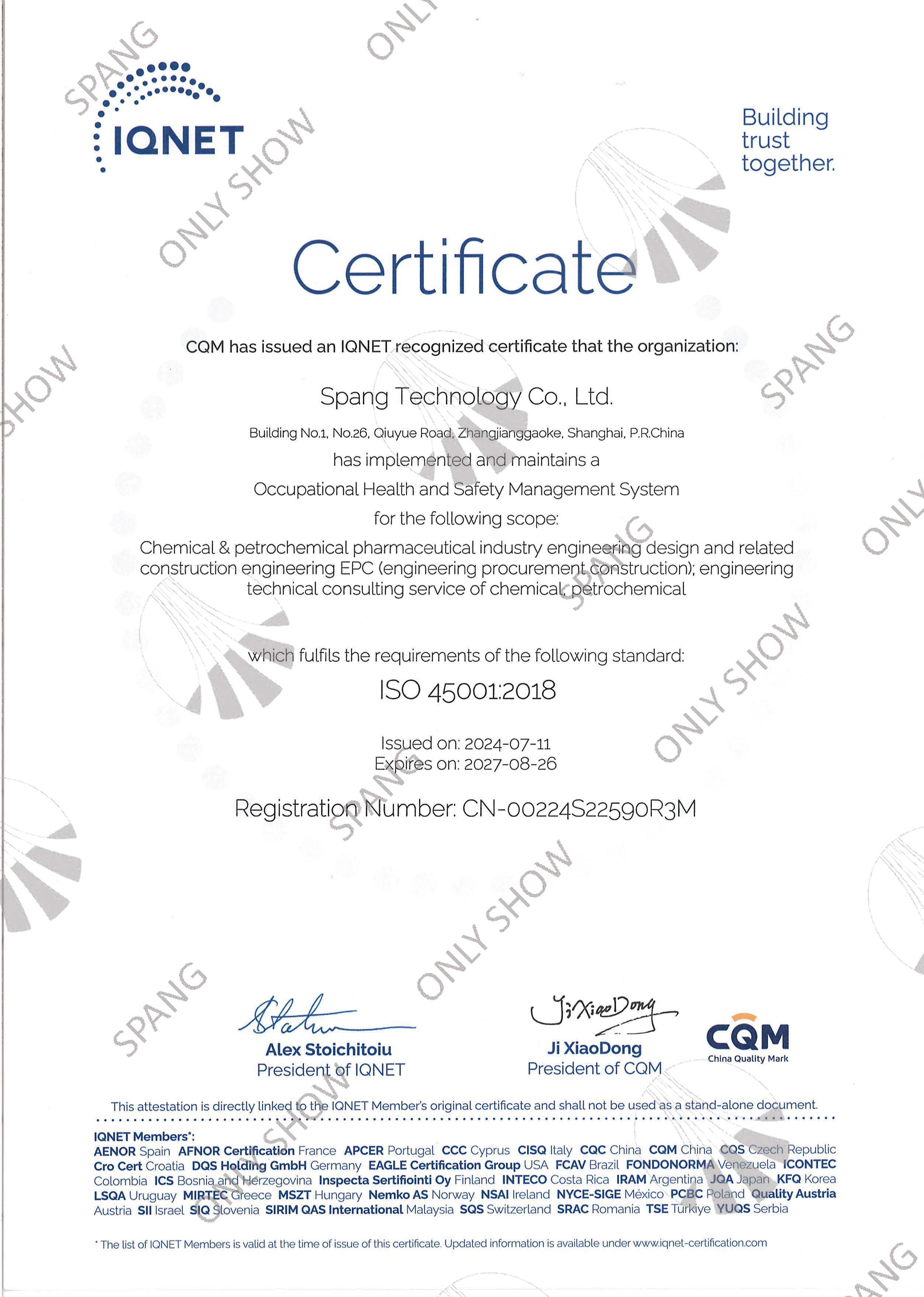職業(yè)健康安全管理體系證書(英文版)-國(guó)際通用