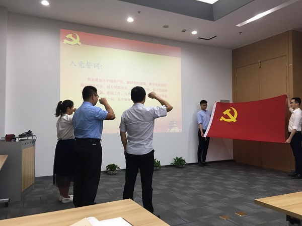 6月15日上午,在中國共產(chǎn)黨成立97周年之際。中共勝幫科技股份有限公司委員會在一樓培訓(xùn)室舉行2018屆預(yù)備黨員入黨宣誓儀式及“反腐倡廉知識測試活動”,與會人員包括公司領(lǐng)導(dǎo)及全體黨員。入黨宣誓儀式在令人熱血澎湃的《國際歌》后正式開始。主持人首先宣布了2018屆新預(yù)備黨員的名單,隨后由公司第二黨支部書記領(lǐng)誓,同新黨員同志一起面向神圣的黨旗,舉右手握拳,深情地宣讀了入…