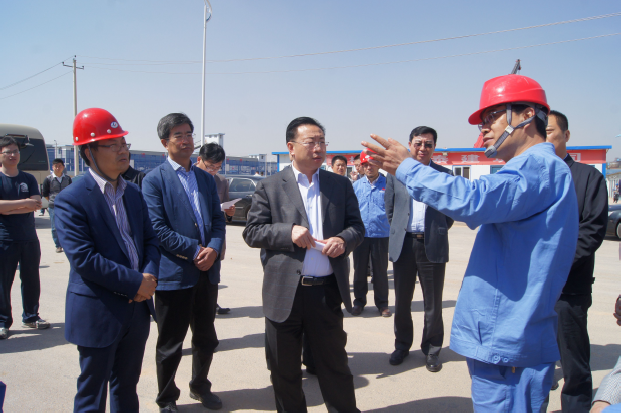 2015 年4 月27 日上午11 時,陜西省榆林市人大常委會主任、市黨組書記胡志強,榆陽區區委書記苗豐,陜北礦業董事長李強林等一行來我乾元項目部進行視察。陜北乾元公司副總衛東向市領導詳細介紹了5 萬噸/年氣固熱載體粉煤熱解工業試驗項目的技術概況、工藝流程、裝置組成及施工進度。市委書記(左3)區委書記(左2)陜北礦業董事長(左1) 胡書記聽取了乾元項目工作匯報后對項目的…