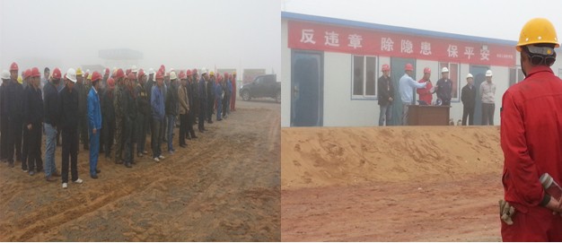建豐項目周安全例會 ---現場報道(2014年4月12日早7點) 2014年4月12日周六早上7點,是建豐項目安全周例會的日子。和往常一樣,各施工單位,總包單位,監理單位,業主單位均出席參加。會議由安全經理馮杰主持,會議共分五個議程:第一項:檢查各施工單位與會人數與實際上報人數、入場培訓是否一致,并對此進行考核。 與會人員及安全檢查評分…
