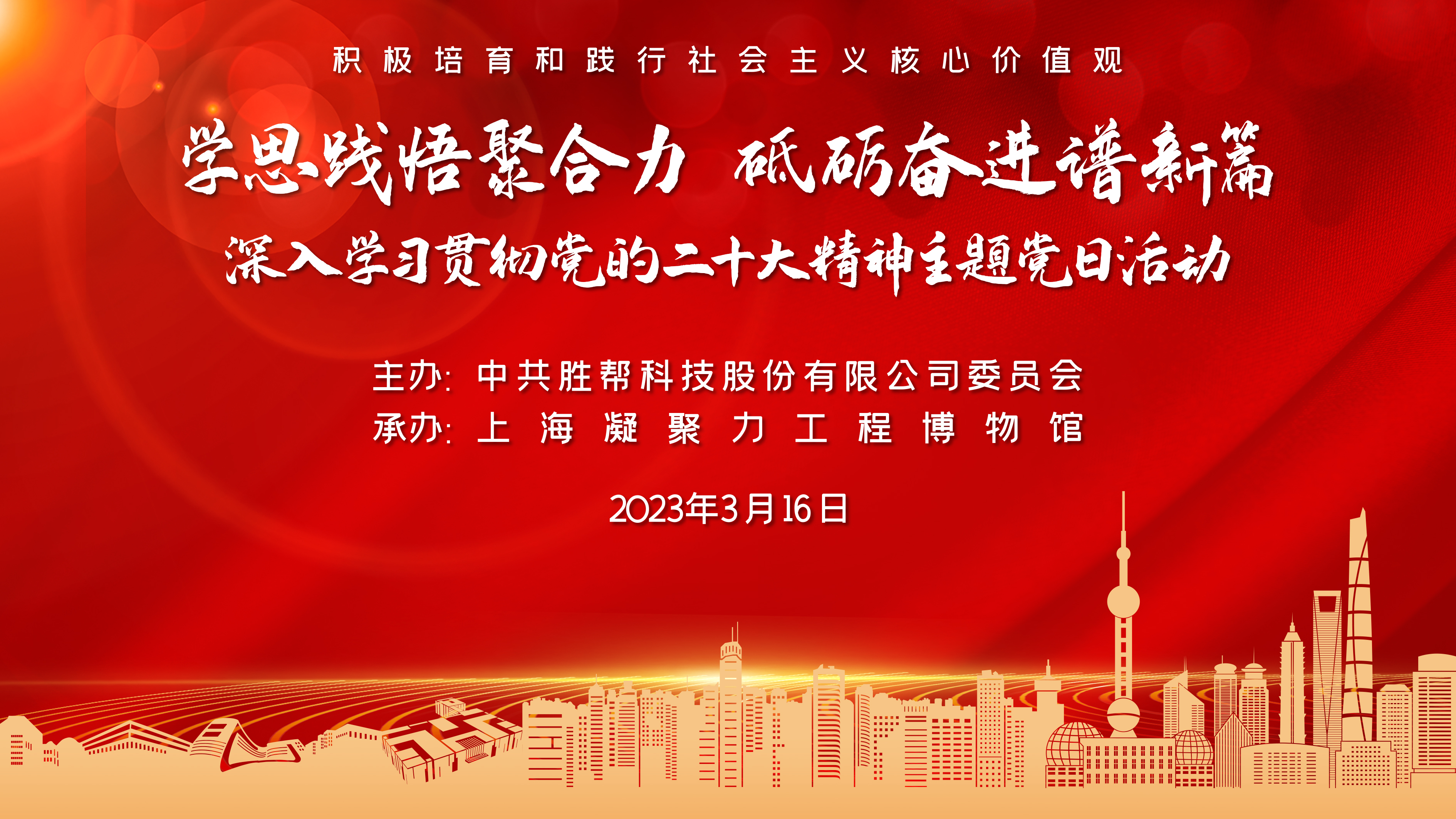 為深入學習貫徹黨的二十大精神,切實把黨員干部的思想和行動統一到黨的二十大精神上來,提高政治站位,砥礪奮斗初心,推進集團公司高質量發展,3月16日,勝幫科技股份有限公司第一黨支部、第二黨支部、第三黨支部赴上海市凝聚力工程博物館開展“學思踐悟聚合力,砥礪奮進譜新篇——深入學習貫徹黨的二十大精神”聯合主題黨日活動。各支部書記及預備黨員、發展對象、入黨積極分子…