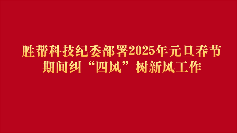 拒腐戒奢辭舊歲,廉潔勤儉度新年。春節(jié)將至,為進一步嚴明紀律規(guī)矩,以嚴的標準深入落實中央八項規(guī)定精神,持續(xù)發(fā)力糾“四風”樹新風,營造風清氣正、崇廉尚儉的節(jié)日氛圍,勝幫科技紀委緊扣時間節(jié)點,針對節(jié)日期間“四風”隱形變異和苗頭性、傾向性問題易發(fā)領域,開展節(jié)前廉潔提醒。1月6日,公司紀委對2025年元旦春節(jié)期間糾“四風”樹新風工作進行安排部署,強調廉潔過節(jié)工作要求…