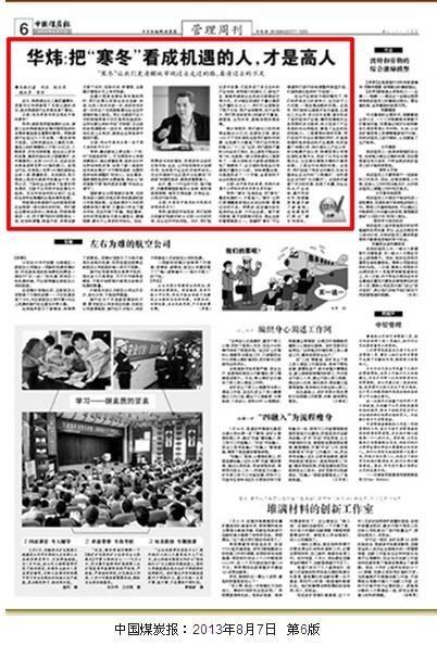華煒:把“寒冬”看成機遇的人,才是高人“寒冬”讓我們更清醒地審視過去走過的路,看清過去的不足近日,陜西煤業化工集團董事長、黨委書記華煒接受了本報記者的采訪,就當前煤炭行業形勢發表了看法。記者:您怎樣看待現在煤炭市場的蕭條?華煒:煤炭是我國能源的主體,煤炭工業的持續穩定發展對國民經濟的發展有著直接且重要的影響。我國煤炭行業經過幾十年發展,一路走來很不容…