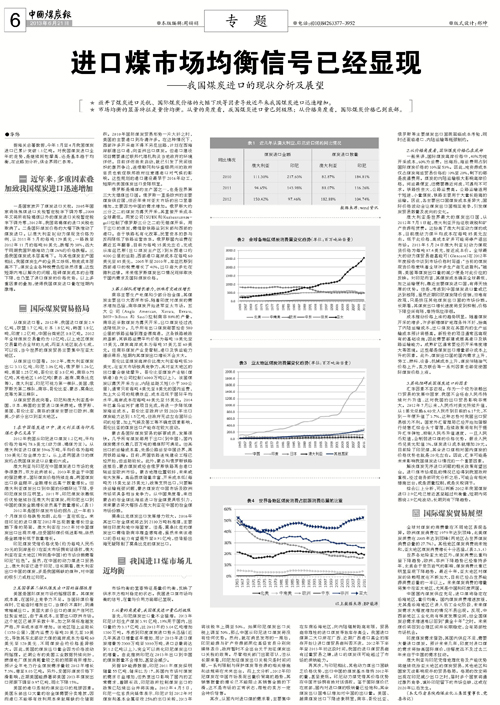 中國煤炭報:2013年6月21日 第6版 進口煤市場均衡信號已經顯現——我國煤炭進口的現狀分析及展望 集團公司董事長、黨委書記 華煒★ 放開了煤炭進口關稅、國際煤炭價格的大幅下跌等因素導致近年來我國煤炭進口迅速增加。★ 市場均衡的顯著特征是量價均衡。從量的角度看,我國煤炭進口量已到極限;從價格角度看,國際煤炭價格已到底部。據海關總署數…