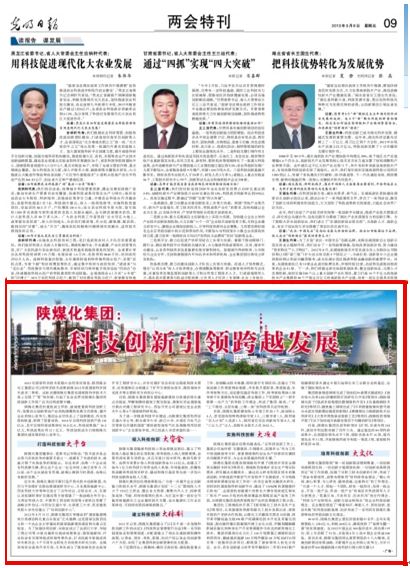 經(jīng)濟(jì)日?qǐng)?bào)2013年3月9日第8版 創(chuàng)新求進(jìn) 多點(diǎn)綻放陜西煤業(yè)化工集團(tuán)打造一流業(yè)績(jī) 譜寫(xiě)跨越華章 2012年,面對(duì)全國(guó)煤炭市場(chǎng)下行壓力加大的嚴(yán)峻形勢(shì),陜西煤業(yè)化工集團(tuán)按照“以煤炭開(kāi)發(fā)為基礎(chǔ),以煤化工為主導(dǎo),多元互補(bǔ)發(fā)展”的戰(zhàn)略,創(chuàng)新求進(jìn),逆勢(shì)而上,多項(xiàng)發(fā)展指再創(chuàng)新高,向著“打造中國(guó)一流安全節(jié)能環(huán)保能源化工企業(yè)”的目標(biāo)邁出堅(jiān)實(shí)步伐。綠色發(fā)展開(kāi)拓煤炭清潔利用新空間 …