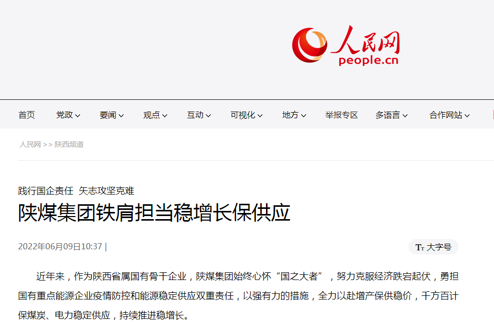近年來,作為陜西省屬國有骨干企業(yè),陜煤集團始終心懷“國之大者”,努力克服經(jīng)濟跌宕起伏,勇?lián)鷩兄攸c能源企業(yè)疫情防控和能源穩(wěn)定供應(yīng)雙重責任,以強有力的措施,全力以赴增產(chǎn)保供穩(wěn)價,千方百計保煤炭、電力穩(wěn)定供應(yīng),持續(xù)推進穩(wěn)增長。數(shù)據(jù)顯示,2021年,陜煤集團全年煤炭產(chǎn)量超2億噸,銷售煤炭2.08億噸,同比多銷1400萬噸;全年煤炭鐵路運量完成1.08億噸,同比增運1295萬噸…