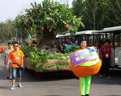 | 陜煤化集團“感恩豐收”的花車在世園會巡游中 |