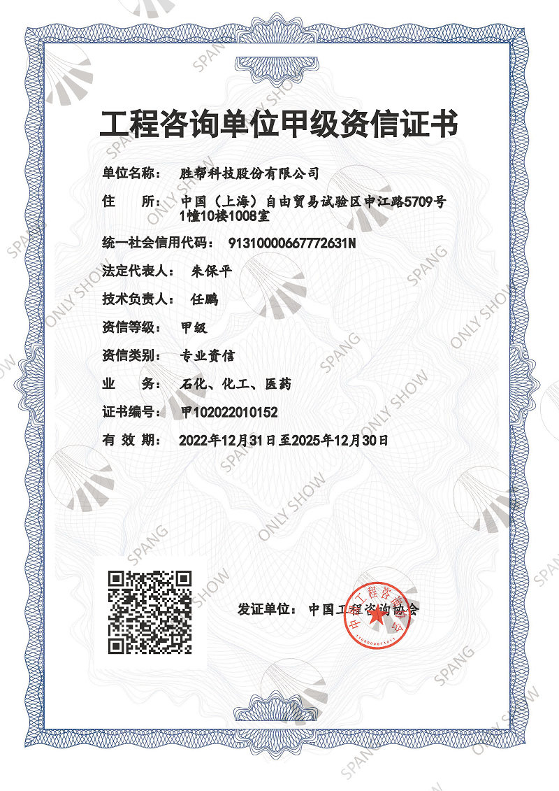 近日,在中國工程咨詢協(xié)會組織開展的2022年工程咨詢單位甲級資信評價中,勝幫科技順利通過專家評審并獲取工程咨詢單位甲級資信證書,業(yè)務(wù)范圍為石化、化工、醫(yī)藥專業(yè)。此次證書的獲取是勝幫科技自2019年首次獲取甲級資信證書到期后的續(xù)期申請,是對勝幫科技工程咨詢業(yè)務(wù)能力及從業(yè)人員的充分肯定,標(biāo)志著勝幫科技在工程咨詢業(yè)務(wù)開展中邁向新征程更進一步。