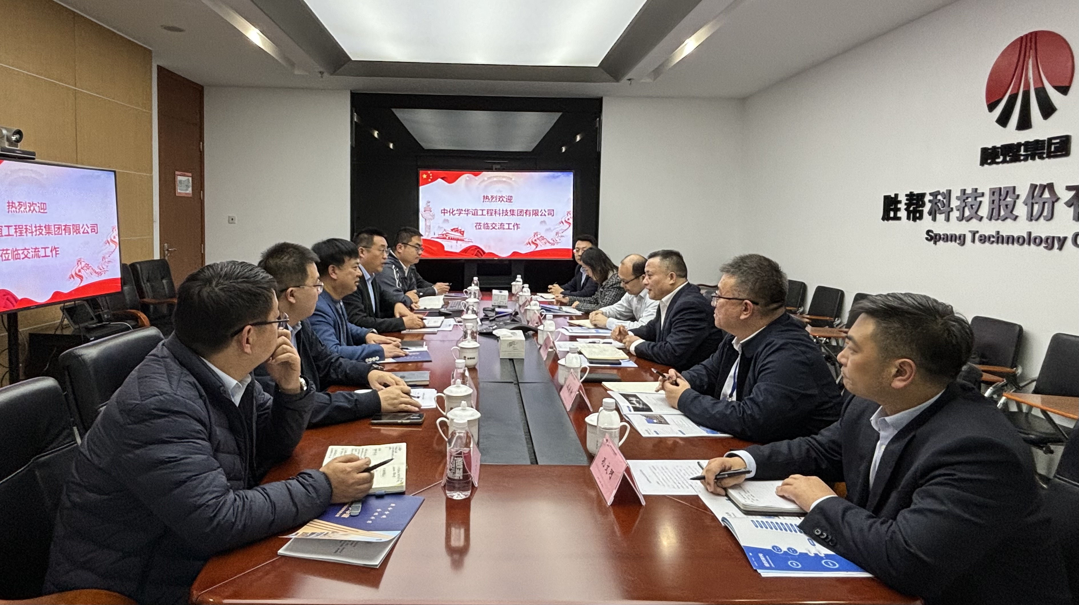 12月7日,中化學華誼工程科技黨委副書記、總經理汪萬勛,副總經理劉洪濤等一行到訪勝幫科技,就加強合作進行座談交流。勝幫科技黨委書記、董事長李昊,副總經理馮建華、盧貝參加交流。
