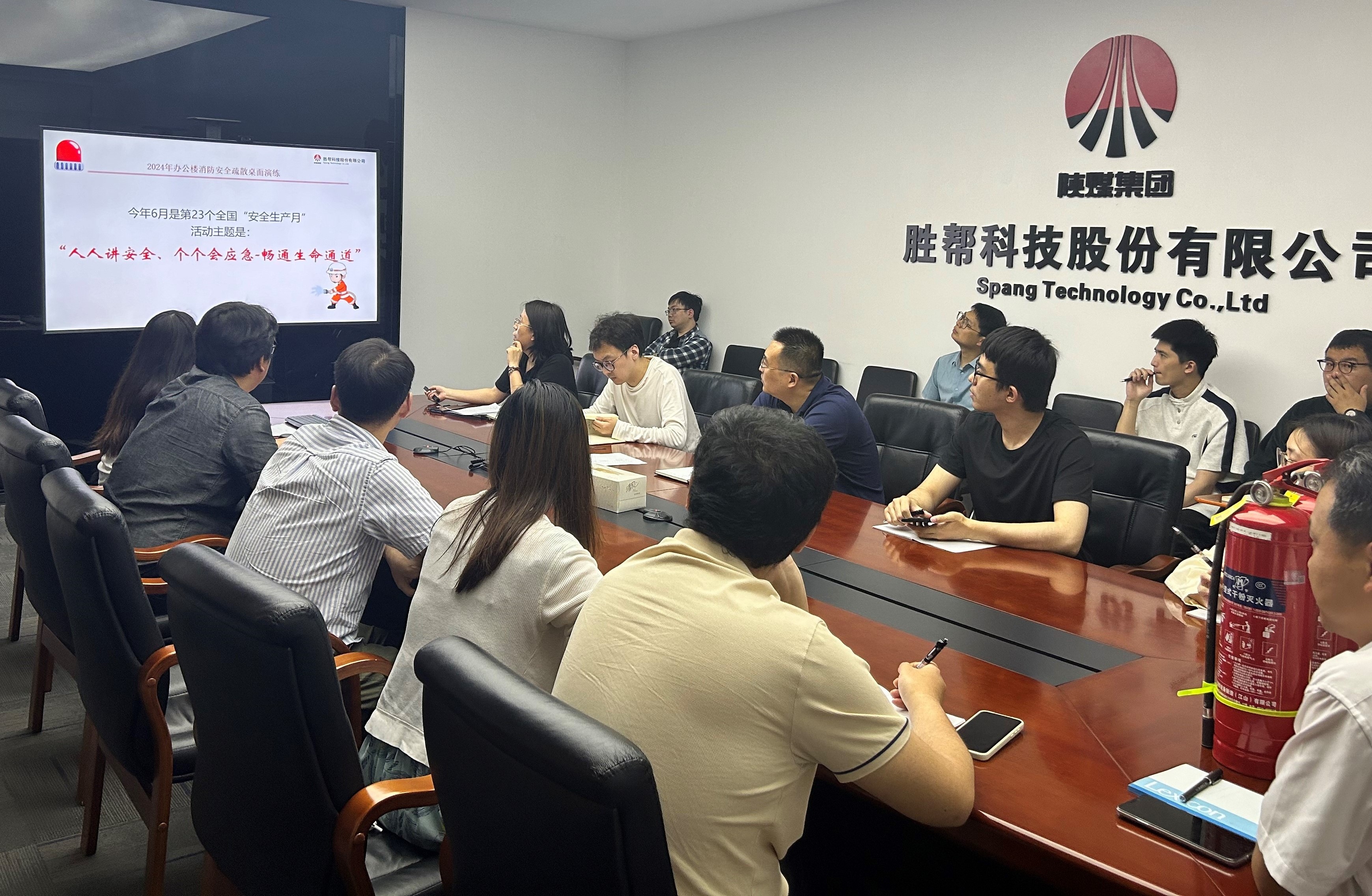 2024年6月是全國第23個“安全生產月”,主題是“人人講安全、個個會應急-暢通生命通道”。為了進一步加強公司員工對消防安全的認識,提高員工在緊急情況下的自救互救能力,勝幫科技于6月19日下午成功開展了2024年辦公樓消防安全疏散桌面演練。此次演練旨在模擬真實火災場景,通過桌面推演的方式,讓員工熟悉火災發生時的應急疏散流程和自救方法。