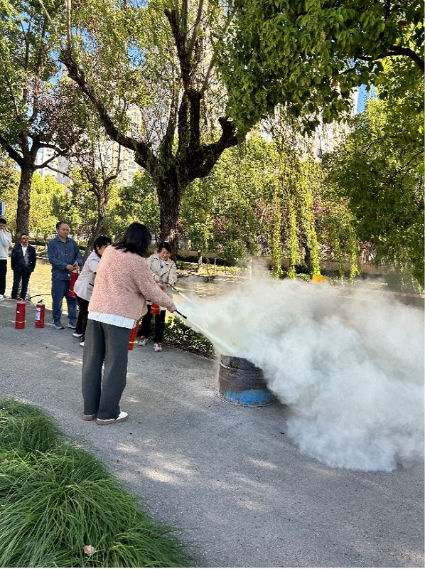 宣傳人員從火災的基礎知識、生活中常見的滅火器材、初期火災的撲救、火災逃生四個方面進行詳細講解。隨后,演示了滅火器的使用方法,并通過互動和舉例的方式,講解常見的火災情形下應采取的逃生方式和求救方法等,進一步提升了大家的消防安全意識。