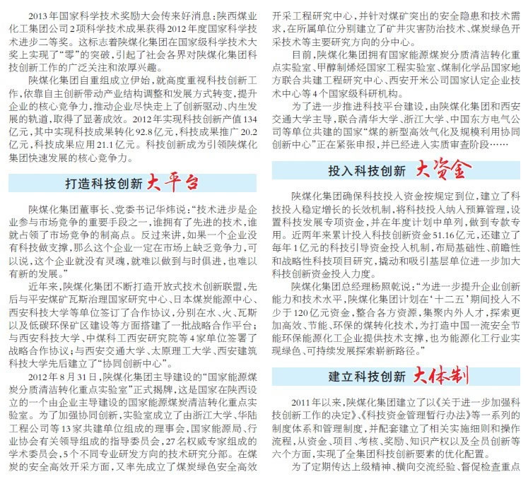 光明日報:陜煤化集團科技創新引領跨越發展