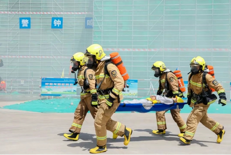 本次演練創(chuàng)新采用虛實結(jié)合、科技應用與第一視角模式,模擬腳手架坍塌、柴油罐車起火、丙烯球罐泄漏等多起事故,檢驗榆林化學與建設(shè)集團多類型事故并發(fā)處置能力。事故模擬發(fā)生后,兩家單位迅速啟動應急預案,充分發(fā)揮高科技設(shè)備與技術(shù)應用優(yōu)勢,精準定位7名被困人員位置,聯(lián)動陜煤集團專業(yè)救援力量開展緊急救援。演練歷時一個半小時,成功解救并疏散“被困人員”,高效完成各項任務。
