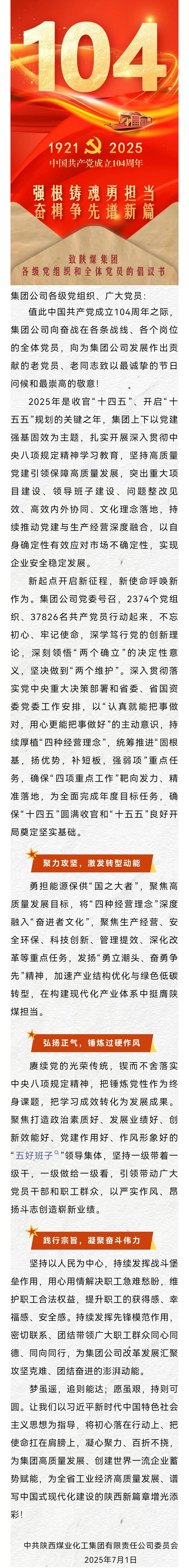 致陜煤集團各級黨組織和全體黨員的倡議書