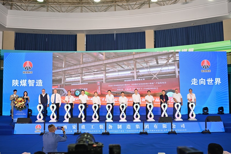 陜西省工業和信息化廳黨組書記、廳長韓宏琪;陜西省國資委黨委副書記、主任韓文;陜煤集團黨委副書記、董事、總經理趙福堂;陜西省發展和改革委員會黨組成員、副主任,省能源局局長何鐘;陜西省科學技術廳副廳長白崇軍;中國煤炭機械工業協會理事長楊樹勇;陜西省煤炭工業協會會長朱周岐;陜西省商務廳對外貿易一處副處長張波等與會人員共同啟動燈光柱,宣布首套煤礦綜采成套出口裝備正式發布。