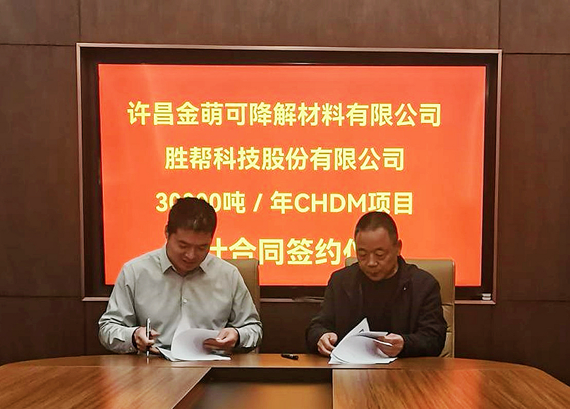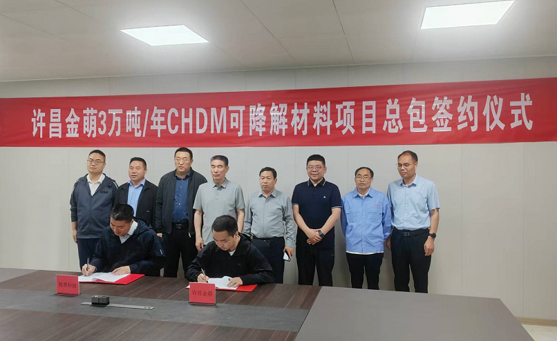 4月21日,許昌金萌可降解材料有限公司3萬(wàn)噸/年CHDM項(xiàng)目工程總承包合同簽約儀式在河南許昌舉行。