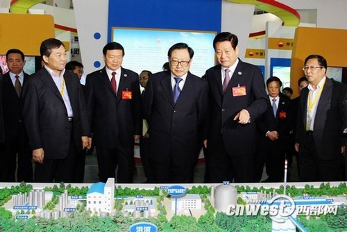 華建敏在陜西省委書記趙正永、省長婁勤儉以及陜煤化集團總經理楊照乾等陪同下參觀集團公司展區