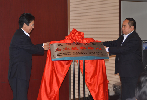 集團公司副總經理尚建選與建設集團黨委書記、董事長喬建華為建設集團省級企業技術中心揭牌