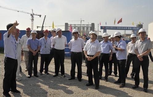 16日下午,集團公司董事長華煒、副總經理尤西蒂,中國長江三峽集團副總經理畢亞雄一行,在蒲城清潔能源化工公司董事長劉培榮、總經理范立明的陪同下,冒著酷暑深入現場,查看施工進展情況。在該公司PP(聚丙烯)裝置施工現場,華煒、畢亞雄邊走邊詳細詢問目前項目的施工進度,在看到現場如火如荼地施工場面和拔地而起的一座座裝置建筑時,他們不住點頭,對項目建設給予了贊揚和肯定。