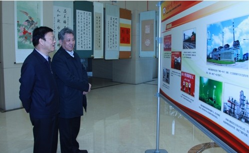 省國資委黨委書記孫安會與集團公司黨委書記、董事長華煒一同在集團十周年圖片展區參觀
