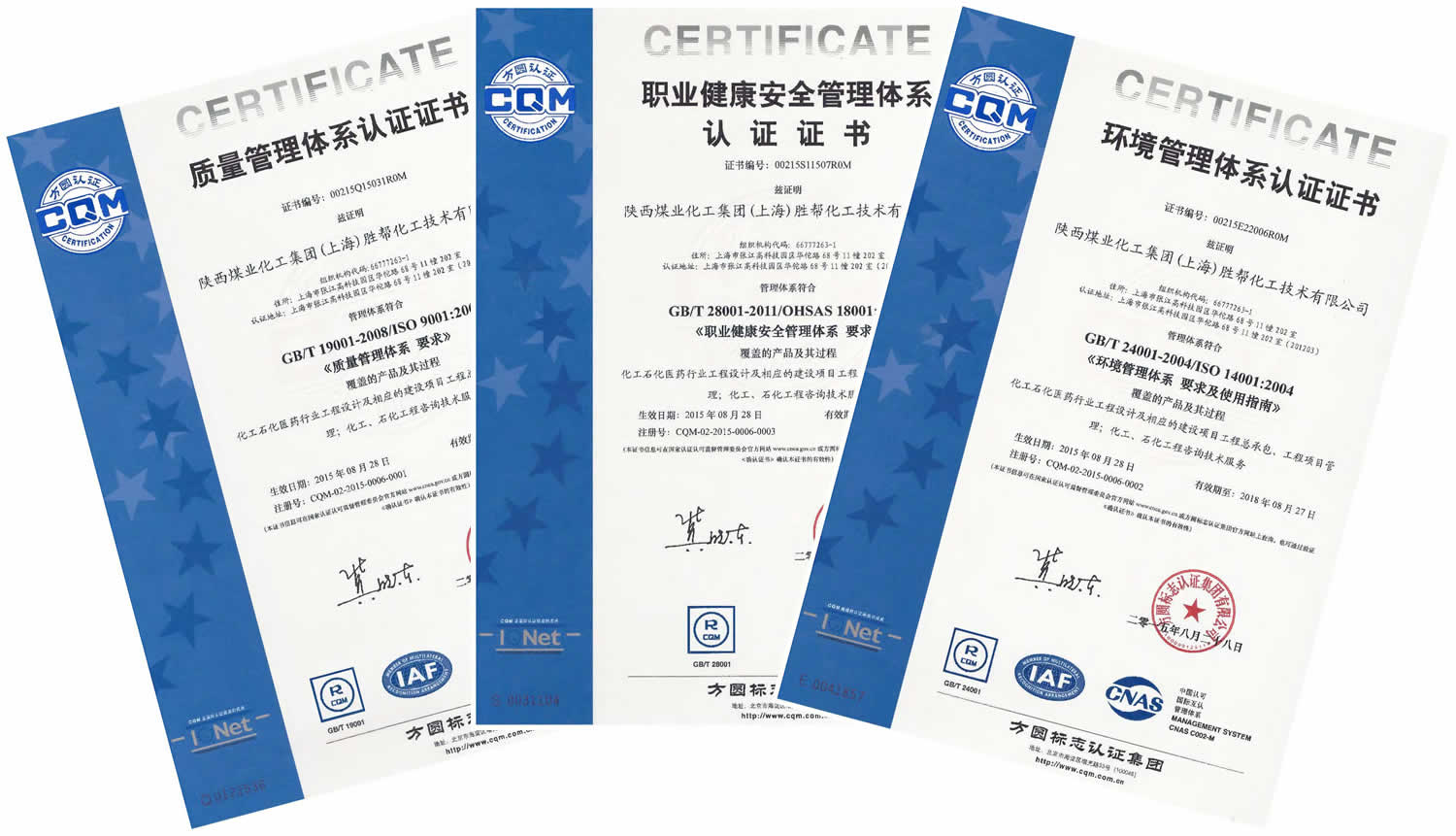 歷時近半年的不懈努力,公司繼2015年3月設計范圍的ISO9001質量管理體系認證后,近日,公司順利通過覆蓋項目全過程(設計、采購、施工、開車)及工程項目管理、工程咨詢技術服務的ISO9001質量管理體系、ISO14001環境管理體系、OHSAS18001職業健康安全管理體系認證,并榮獲權威認證機構方圓標志認證集團頒發的證書。此次三大體系認證的全面通過,標志著公司綜合管理水平上升到一個新的臺階,已經與國際水準接軌,這對于增強企業內部管理力和外部競爭力都具有重要的意義。